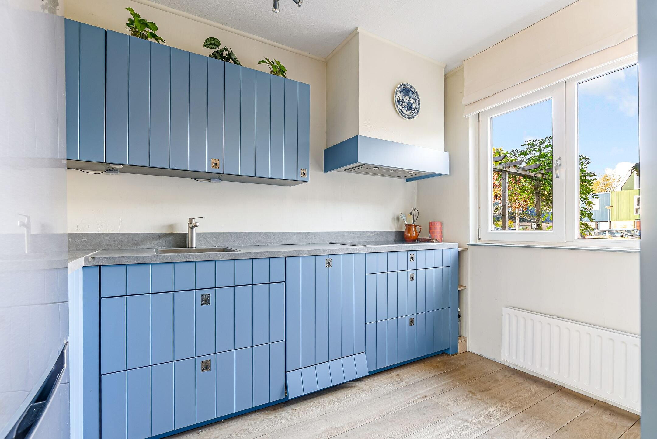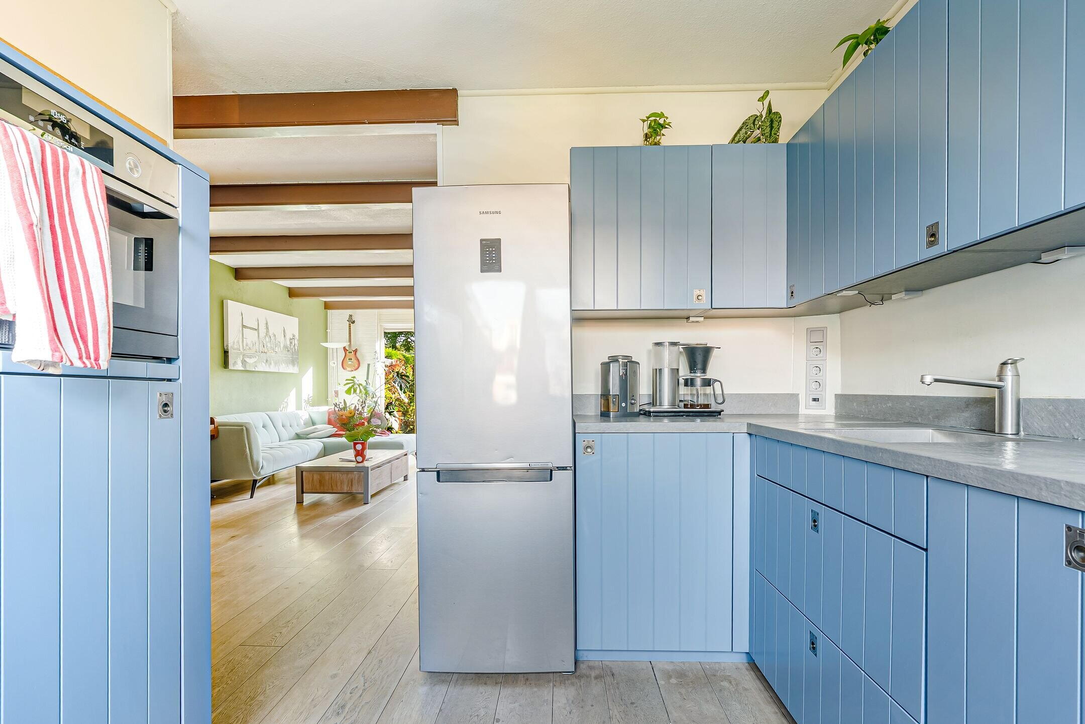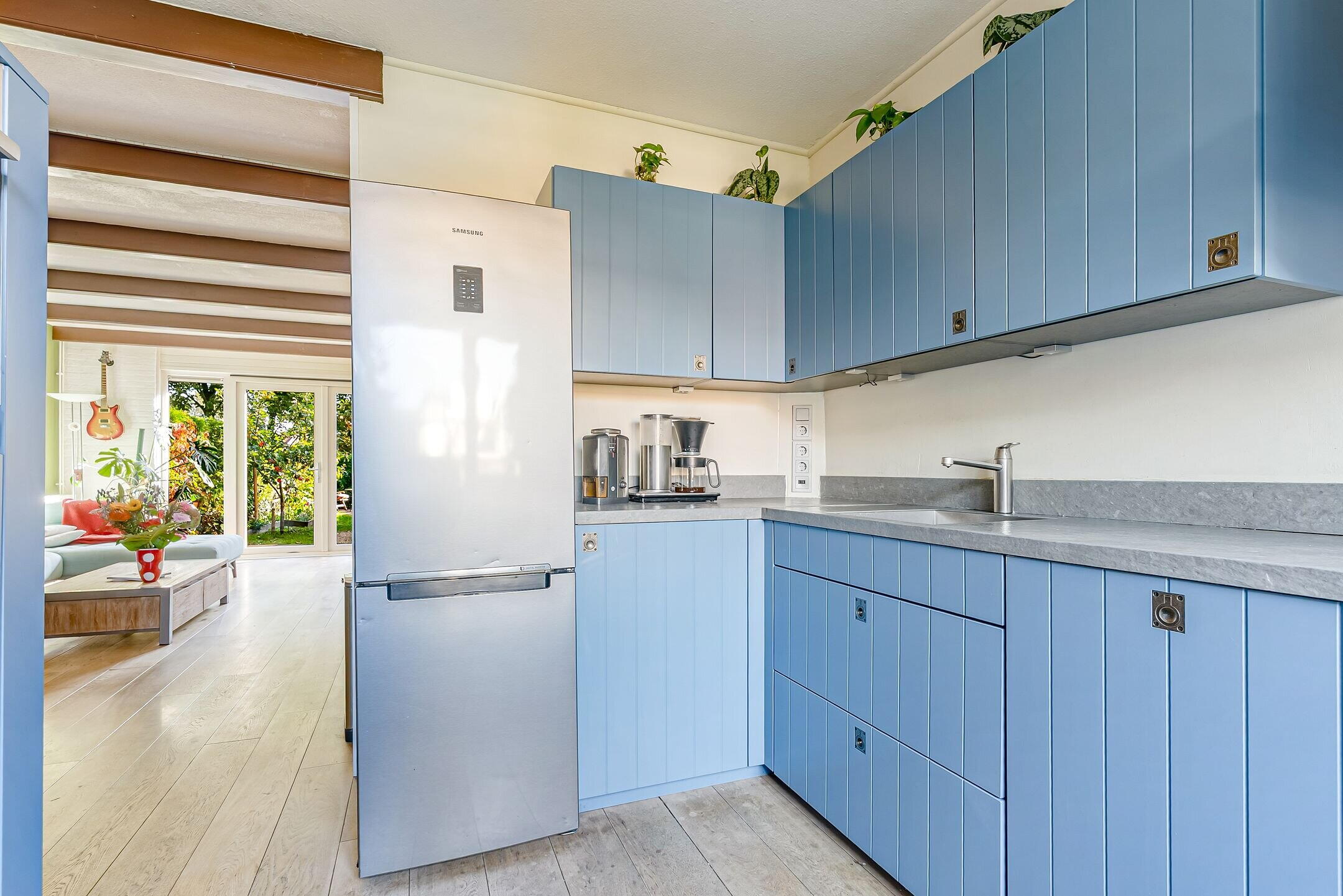 De keuken is aan de voorzijde gelegen en is zeer ruim. De keuken is voorzien van diverse kastjes voor bergruimte en de volgende apparatuur: koel-/vriescombinatie, stoom combi-magnetron, vaatwasser, 4 pits inductiekookplaat kookplaat en afzuigkap. Vanuit de keuken heb je een leuk uitzicht over de voortuin en de straat.