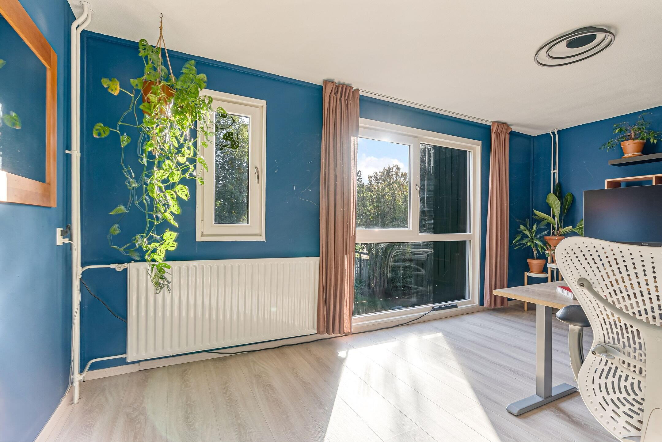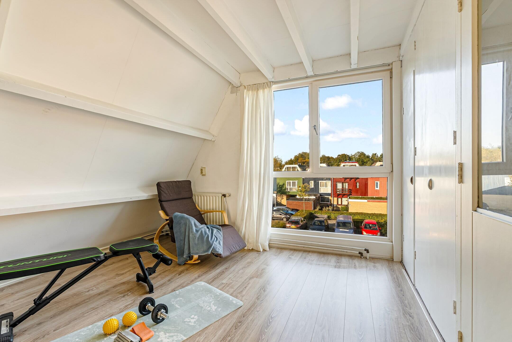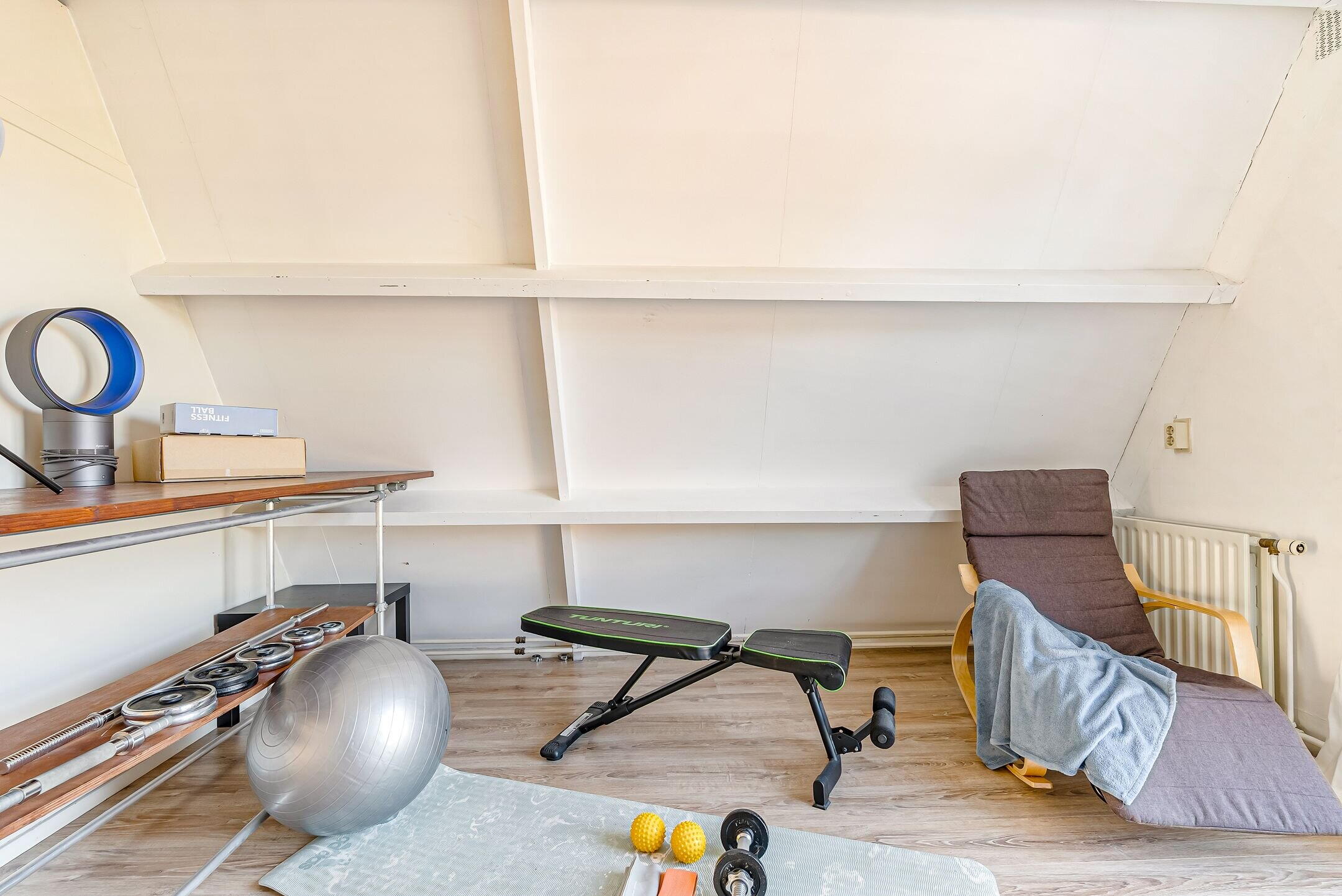 De 2e verdieping geeft toegang tot nog twee extra slaapkamers. De grootste slaapkamer aan de achterzijde is ingericht als hoofdslaapkamer. Op deze verdieping vinden we verder nog een zee aan bergruimte én een bergkast met cv-ketel en wasmachine-/drogeraansluiting.